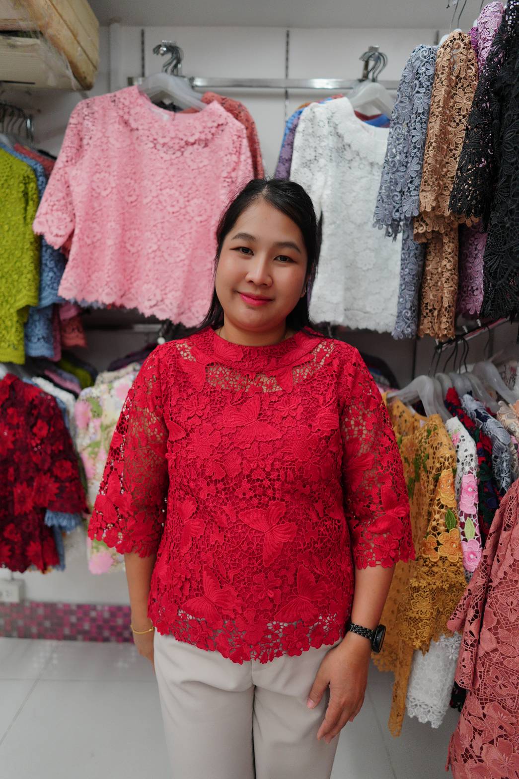 แนะนำงานเสื้อลูกไม้สีแดงลายผีเสื้อ